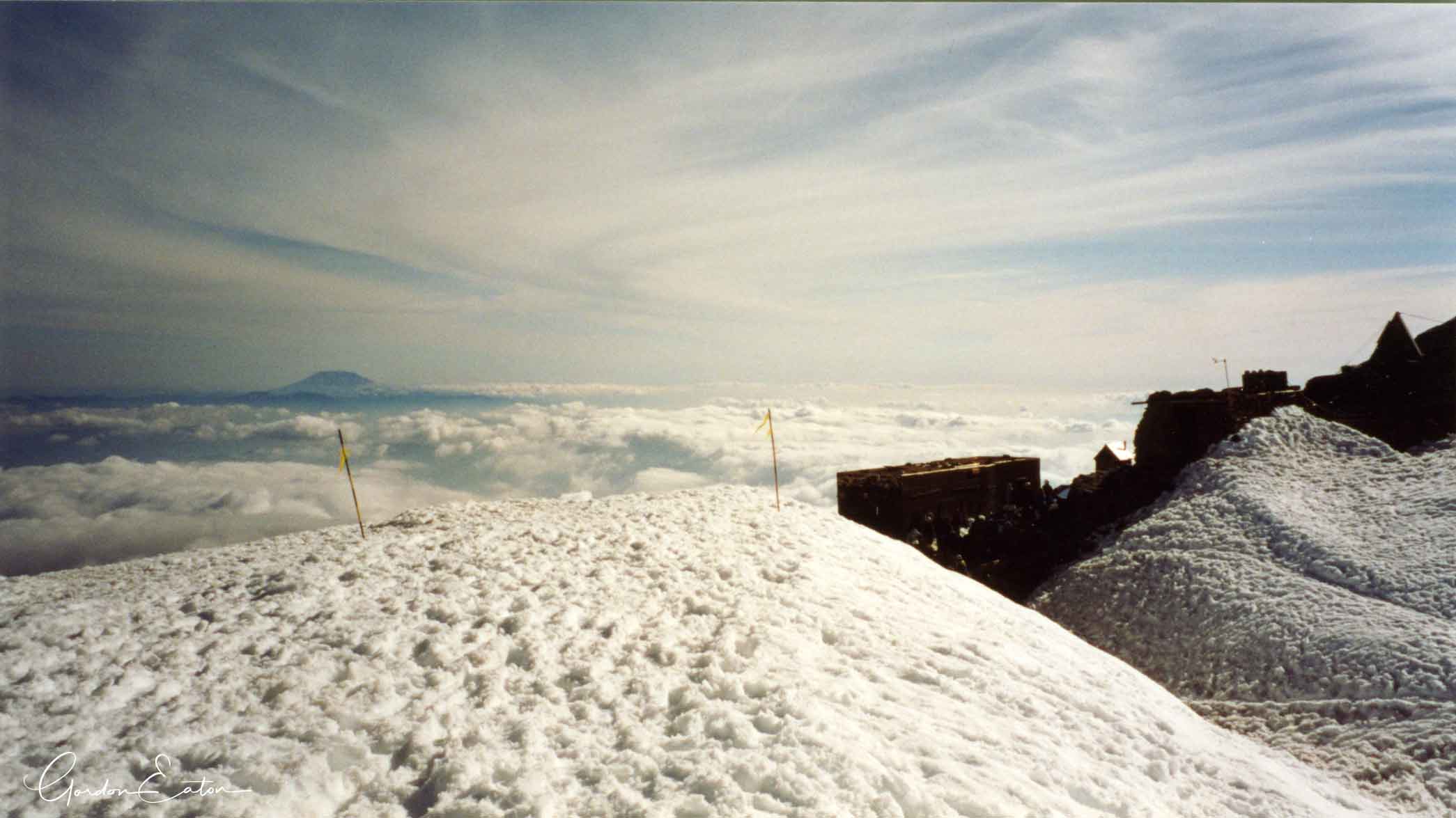 Camp Muir with Mt St Helens in the background. Notice the RMI hut.