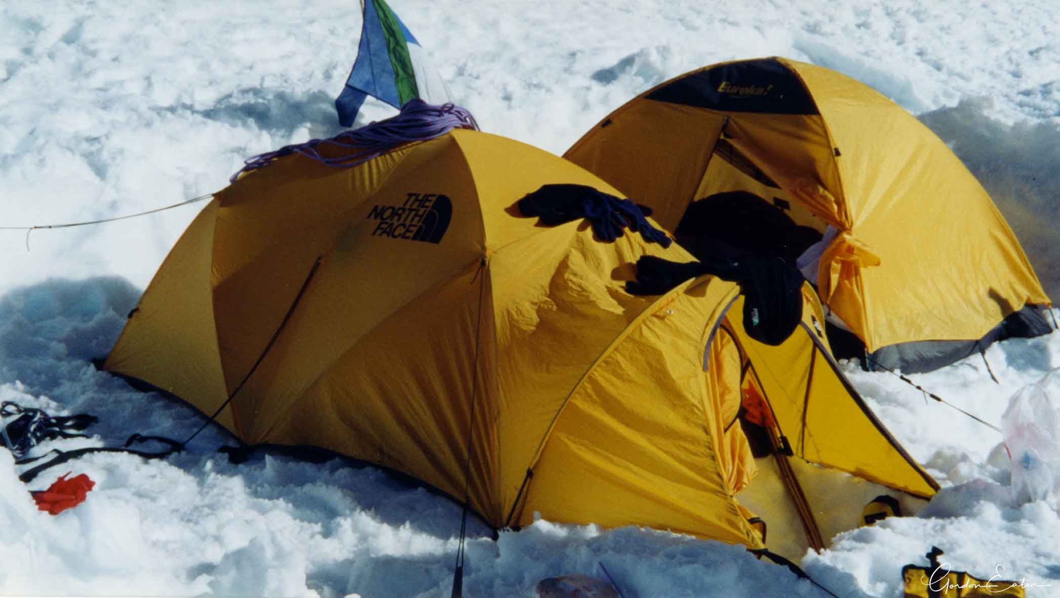 Two 4-season tents, sleeping bags, sleeping pads, Tibetan prayer flags